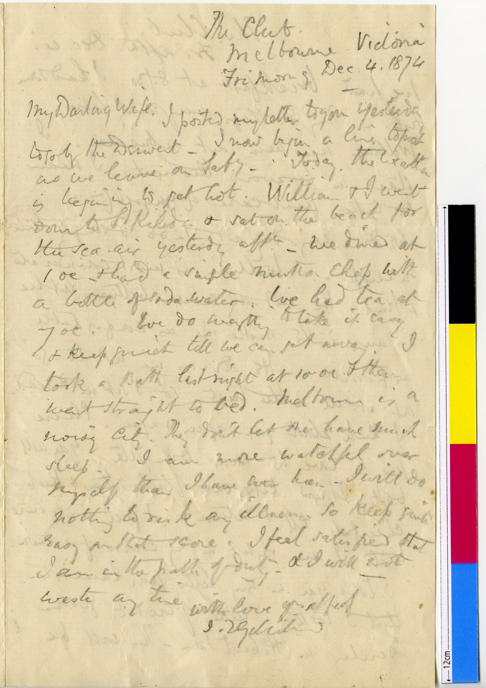Letters from Joseph Tice Gellibrand to Selina Gellibrand, 4-5 Dec 1874