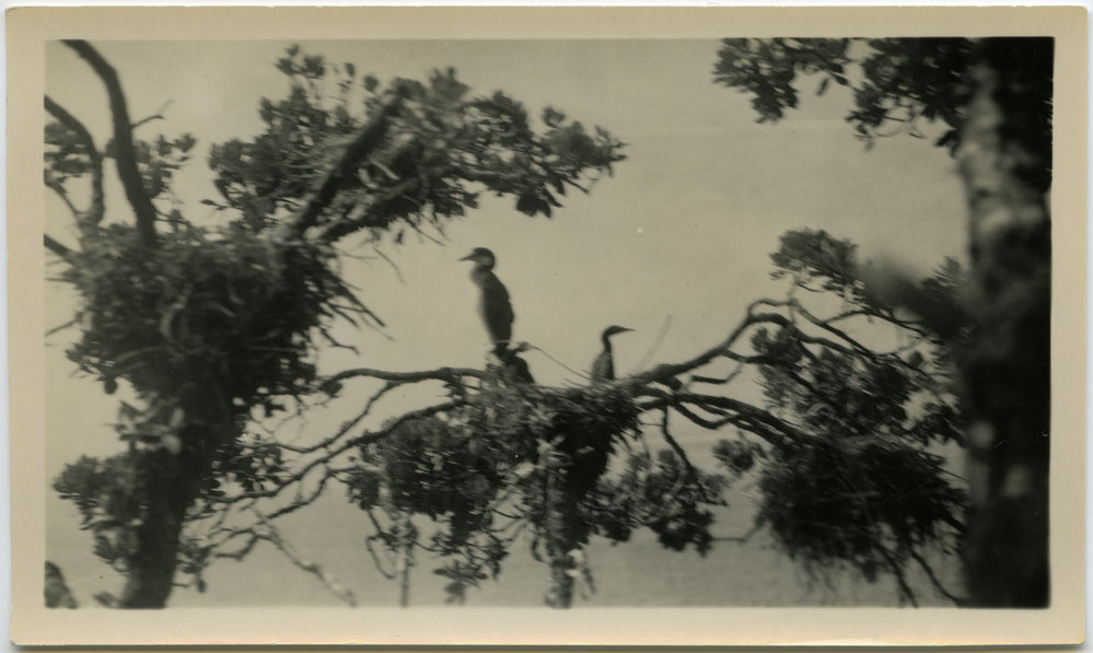 Reference NumberMs 33/5/193DescriptionView of two shags perched on branches (equates to Ms 33/5/330)CreatorSladden, Bernard, 1879–1961LevelItemFormatpositivePhysical Description68x113 silver gelatin print
