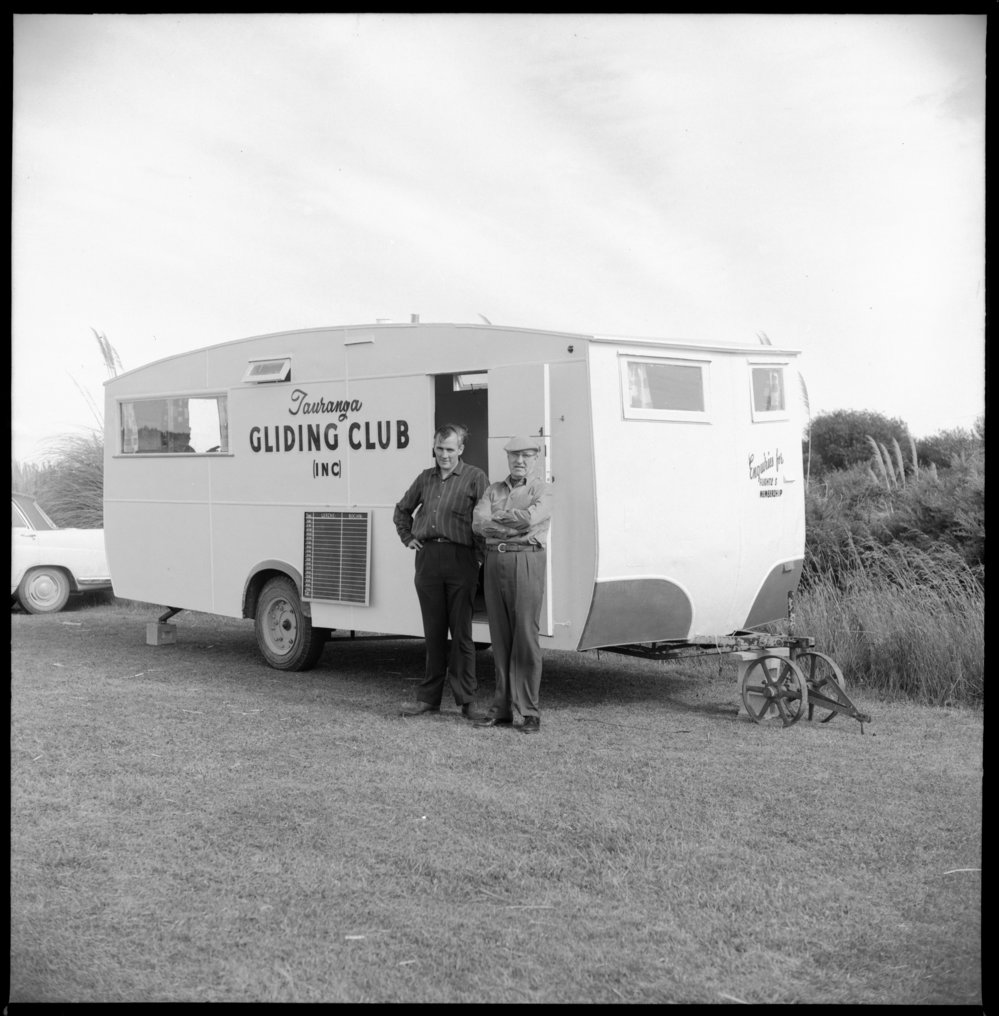 Tauranga Gliding Club. New mobile H/Q. Norman Murray, Dr Frank Sligo (23 November 1964). Pae Korokī, accessed 16/04/2026, https://paekoroki.tauranga.govt.nz/nodes/view/53870