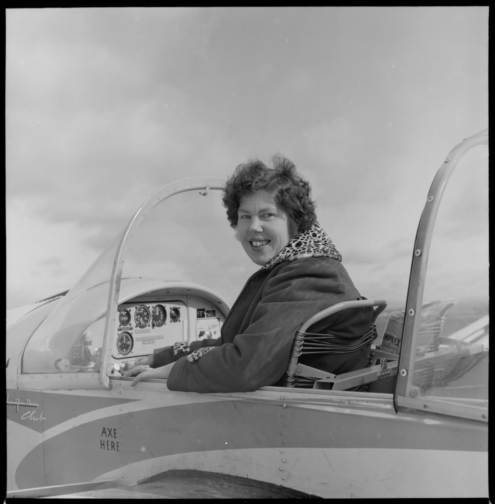 Miss Shirley Faull. Solo flight in Tauranga Aero Club aircraft.
