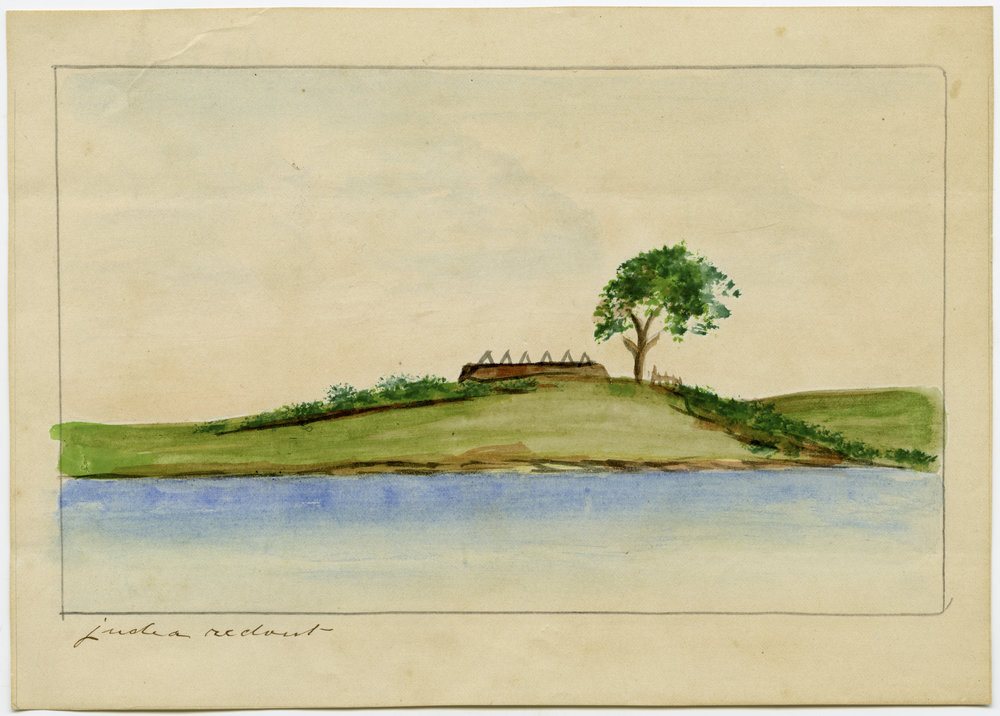 Reference NumberArt 21-037DescriptionOriginal handwriting on front "Judea redoubt." Painted by an unknown soldier who was present at the siege of Maketū, the battles of Pukehinahina and Te Ranga, and during the subsequent occupation of the Tauranga district.FormatWatercolourPhysical Description178mm x 127mm