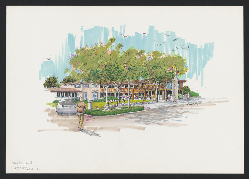 Coker, Jenny, Greerton 2, original artwork of possible city scene (c. 2008). Pae Korokī, accessed 27/03/2026, https://paekoroki.tauranga.govt.nz/nodes/view/57383