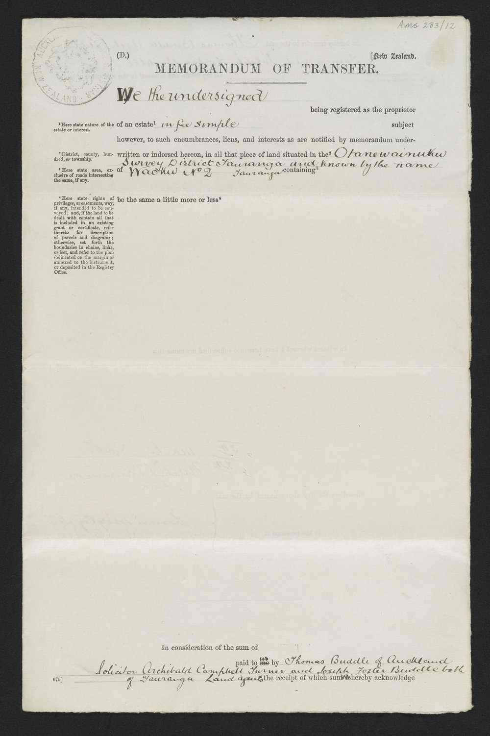 "Memorandum of transfer" (14 May 1881). Pae Korokī, accessed 03/04/2026, https://paekoroki.tauranga.govt.nz/nodes/view/57472