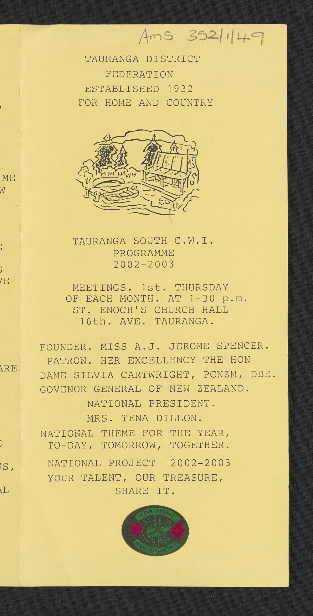 Tauranga South Women's Institute, Tauranga South Women's Institute programme for 2002-2003 (2002-2003). Pae Korokī, accessed 22/04/2026, https://paekoroki.tauranga.govt.nz/nodes/view/57501