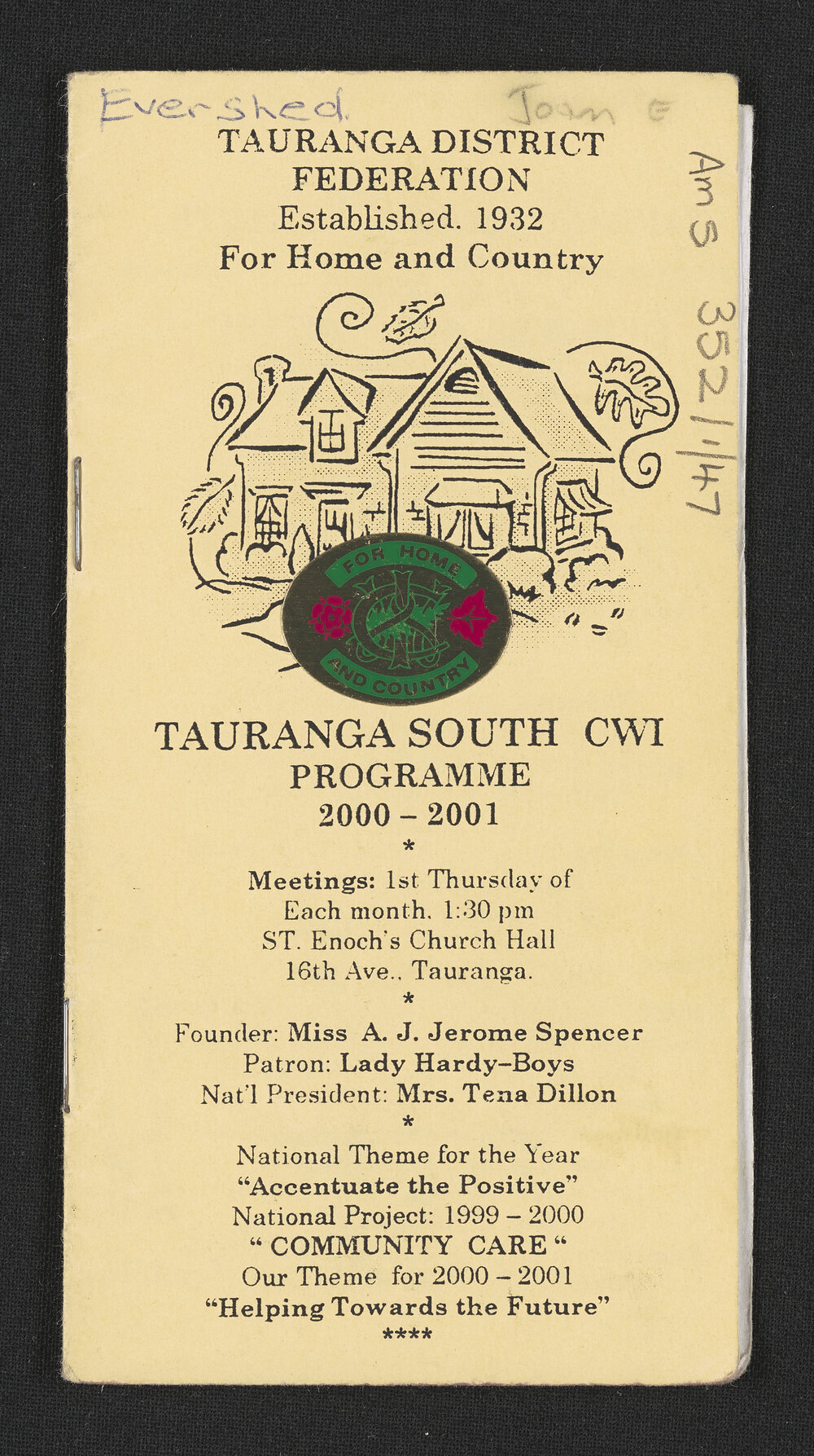 Tauranga South Women's Institute, Tauranga South Women's Institute programme for 2000-2001 (2000-2001). Pae Korokī, accessed 22/04/2026, https://paekoroki.tauranga.govt.nz/nodes/view/57503