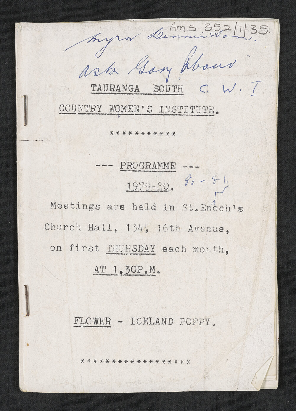 Tauranga South Women's Institute, Tauranga South Women's Institute programme for 1979-1980 (1979-1980). Pae Korokī, accessed 22/04/2026, https://paekoroki.tauranga.govt.nz/nodes/view/57515