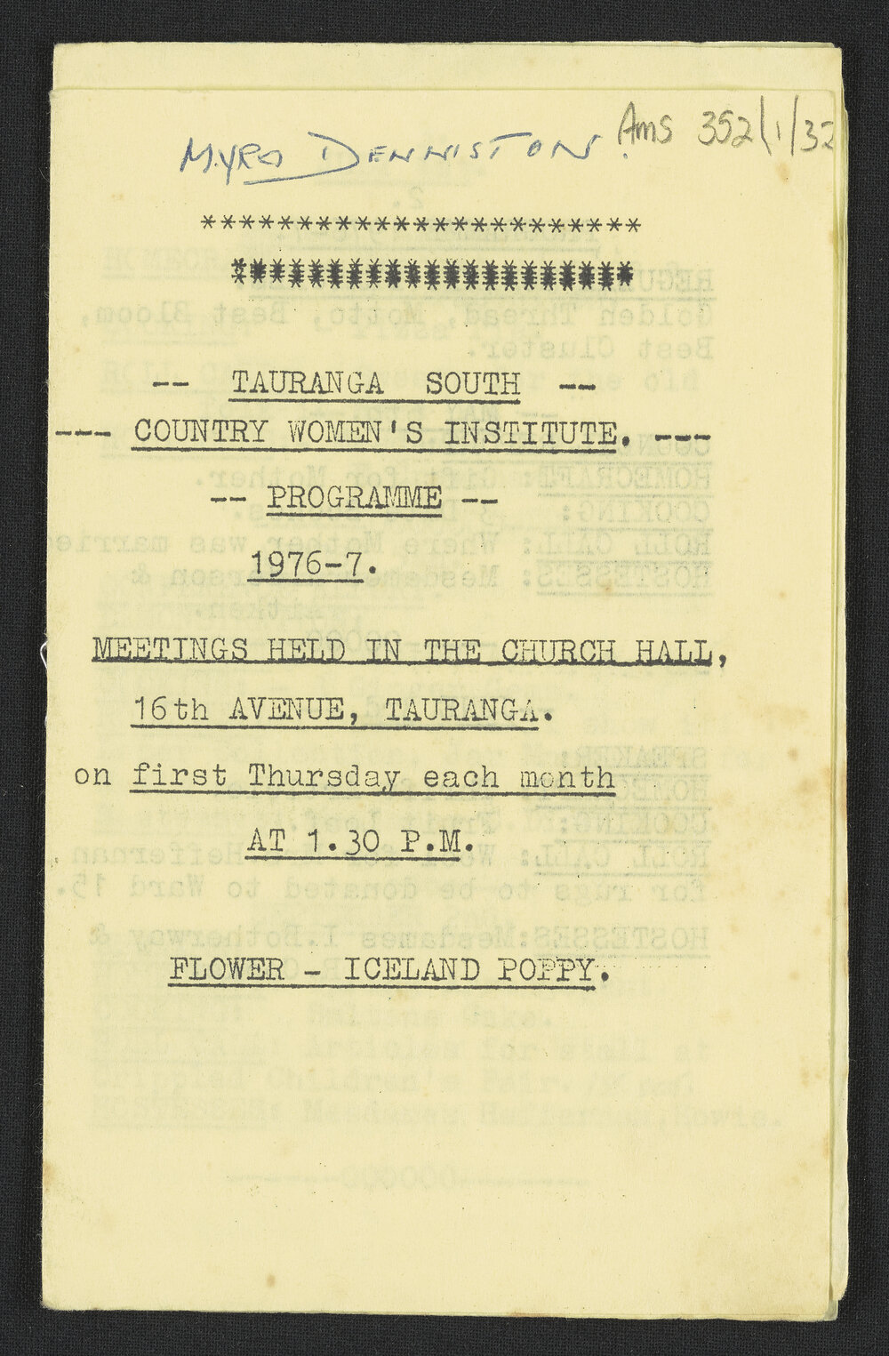 Tauranga South Women's Institute, Tauranga South Women's Institute programme for 1976-1977 (1976-1977). Pae Korokī, accessed 22/04/2026, https://paekoroki.tauranga.govt.nz/nodes/view/57518