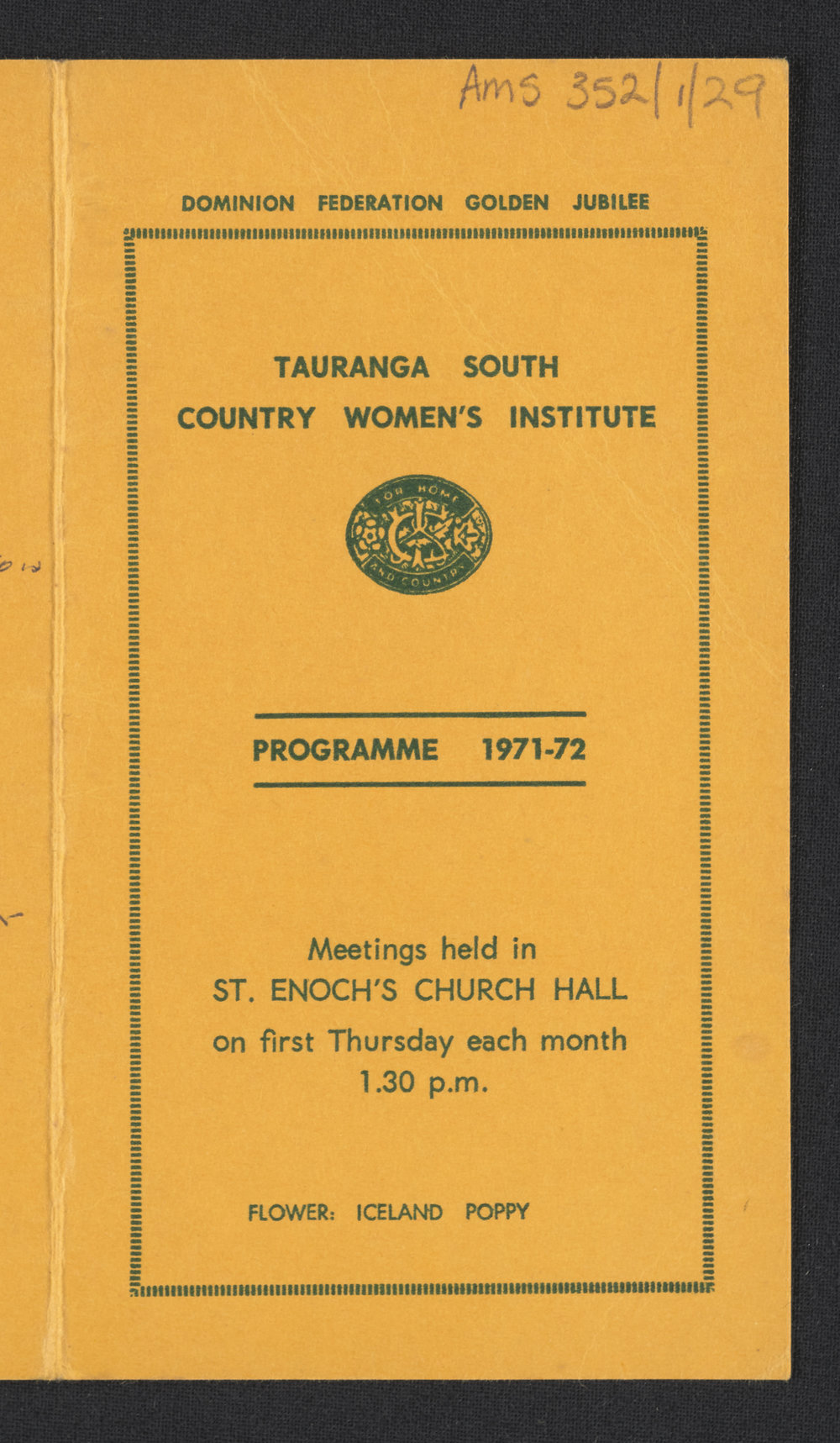 Tauranga South Women's Institute, Tauranga South Women's Institute programme for 1971-1972 (1971-1972). Pae Korokī, accessed 22/04/2026, https://paekoroki.tauranga.govt.nz/nodes/view/57521