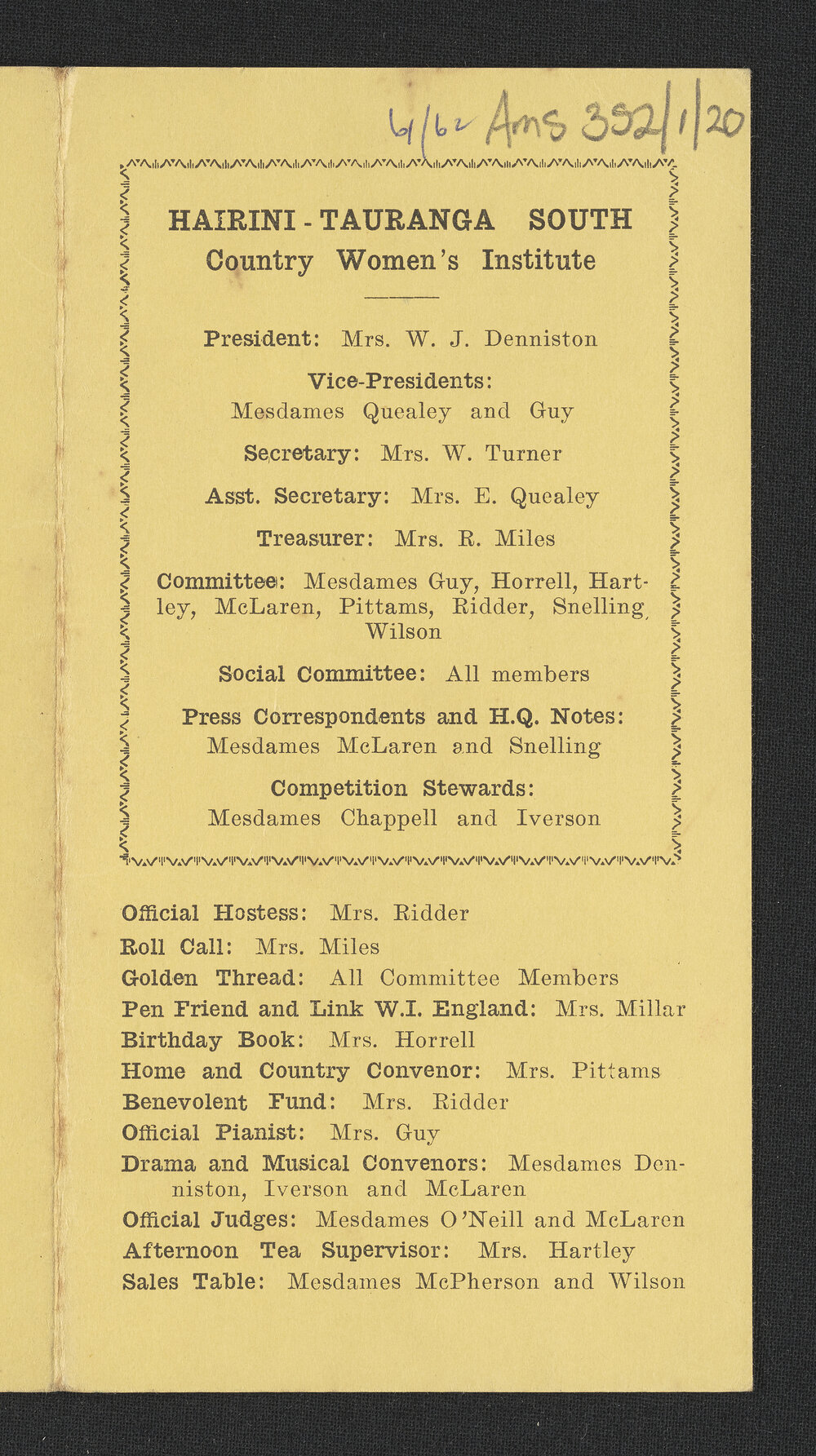 Hairini-Tauranga South Women's Institute, Hairini-Tauranga South Women's Institute programme for 1961-1962 (1961-1962). Pae Korokī, accessed 22/04/2026, https://paekoroki.tauranga.govt.nz/nodes/view/57530