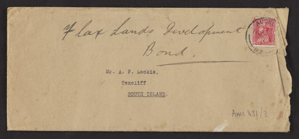 Envelope addressed to Mr Leckie, Seacliff, South Island (August 1929). Pae Korokī, accessed 16/04/2026, https://paekoroki.tauranga.govt.nz/nodes/view/57570