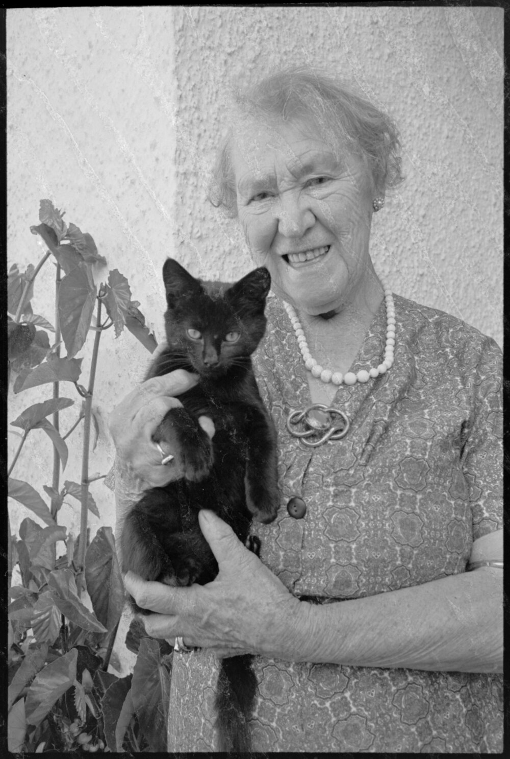 Date11 January 1964Reference NumberPhoto gcc-5779DescriptionMrs K. Hawkins and cat. Published 11 January 1964FormatnegativePhysical Description35mm black-and-white negative (1/2)Photographer/CreatorBay of Plenty Times