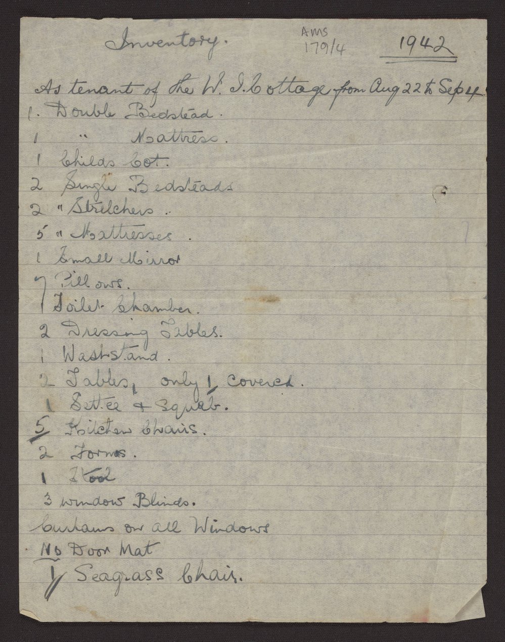 Tauranga Federation of Country Women's Institutes, Inventory of the Women's Institute Cottage, 1942 (1942). Pae Korokī, accessed 08/04/2026, https://paekoroki.tauranga.govt.nz/nodes/view/59257