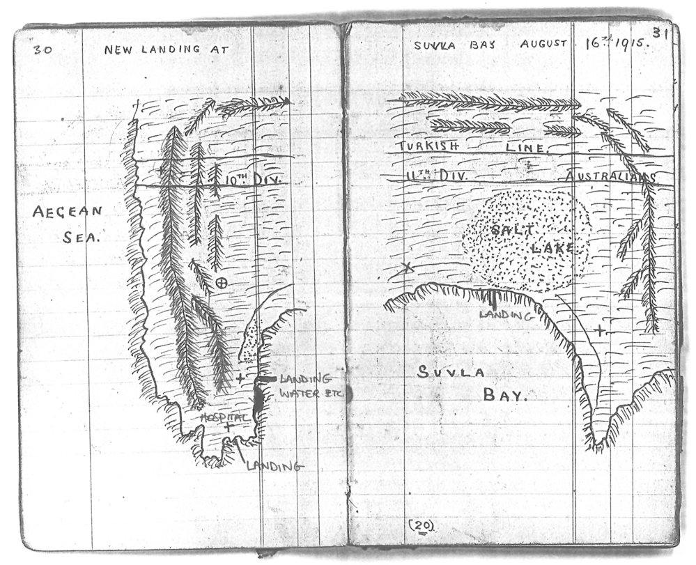 About 5:30 we came in sight of 6allipoli. As I said the 10th Division was to force a new landing on the Peninsula at a place called Anaforta. There is a sketch to show how it looked like(*attached). The bay is about a mile and a half in width.