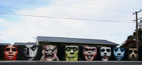 Two highly visible grisaille works depicting Elvis Presley and Michael Jackson adorn the walls of a building on Tauranga’s 15th Avenue.