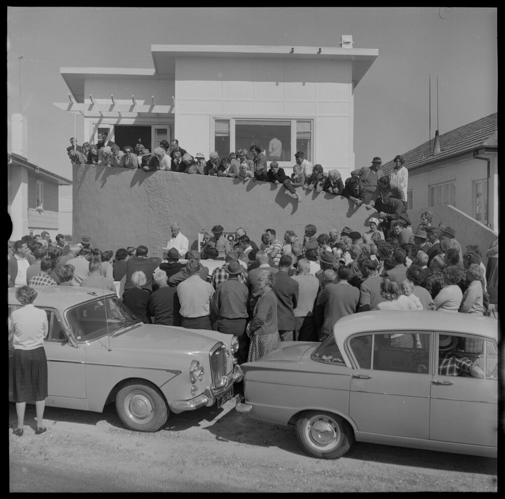 House being auctioned at the Mount. (5 September 1966). Pae Korokī, accessed 18/03/2026, https://paekoroki.tauranga.govt.nz/nodes/view/70586