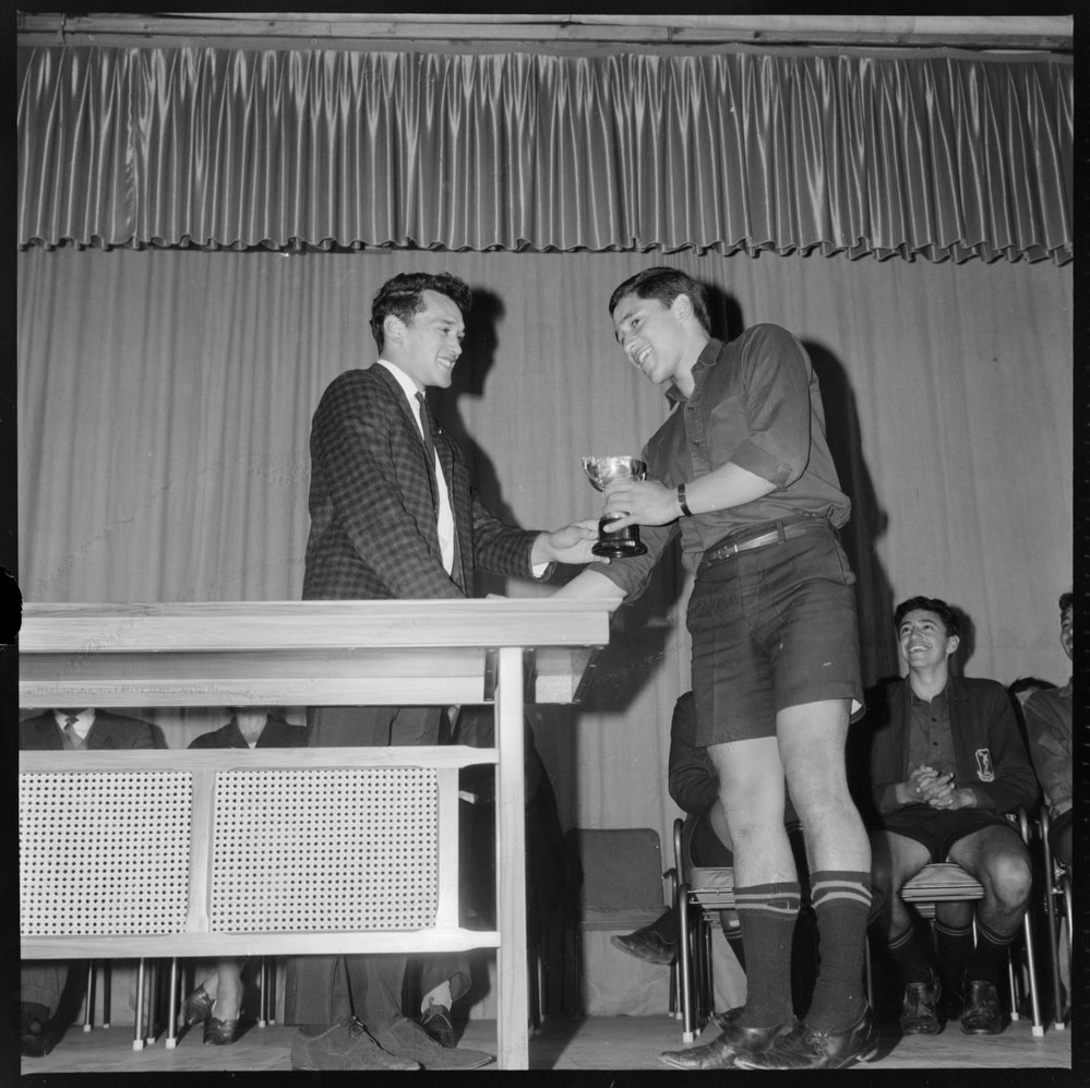 Mr Frank Winiata presents cup to Andy Rolleston. (8 October 1966). Pae Korokī, accessed 16/04/2026, https://paekoroki.tauranga.govt.nz/nodes/view/71101