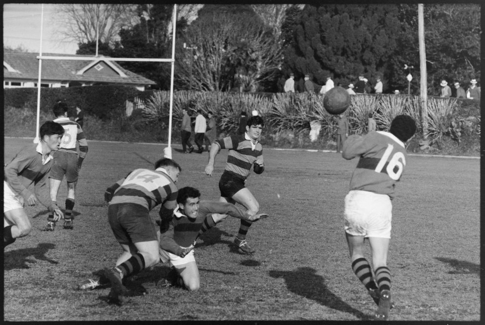 Date12 August 1963Reference NumberPhoto gcc-3746DescriptionRugby - Cadets versus Te Puna Ron. Joli, Louis Bidois, Peter Bidois, Jim Dalley. Published 12 August 1963Physical Description35mm black-and-white negative (3/3)Photographer/CreatorBay of Plenty Times