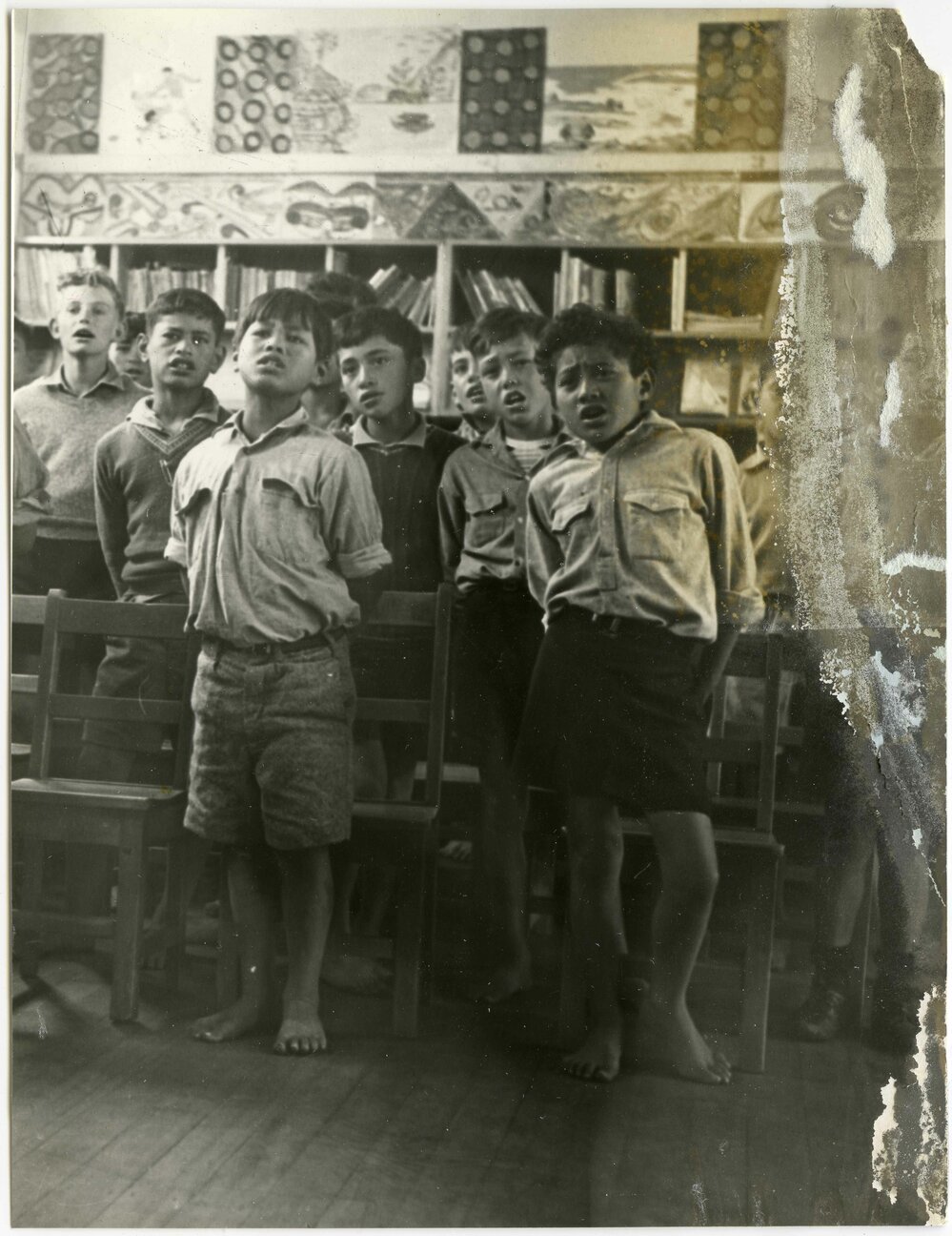 Mt News. Children from Matapihi School singing for officers of Shoan Maru