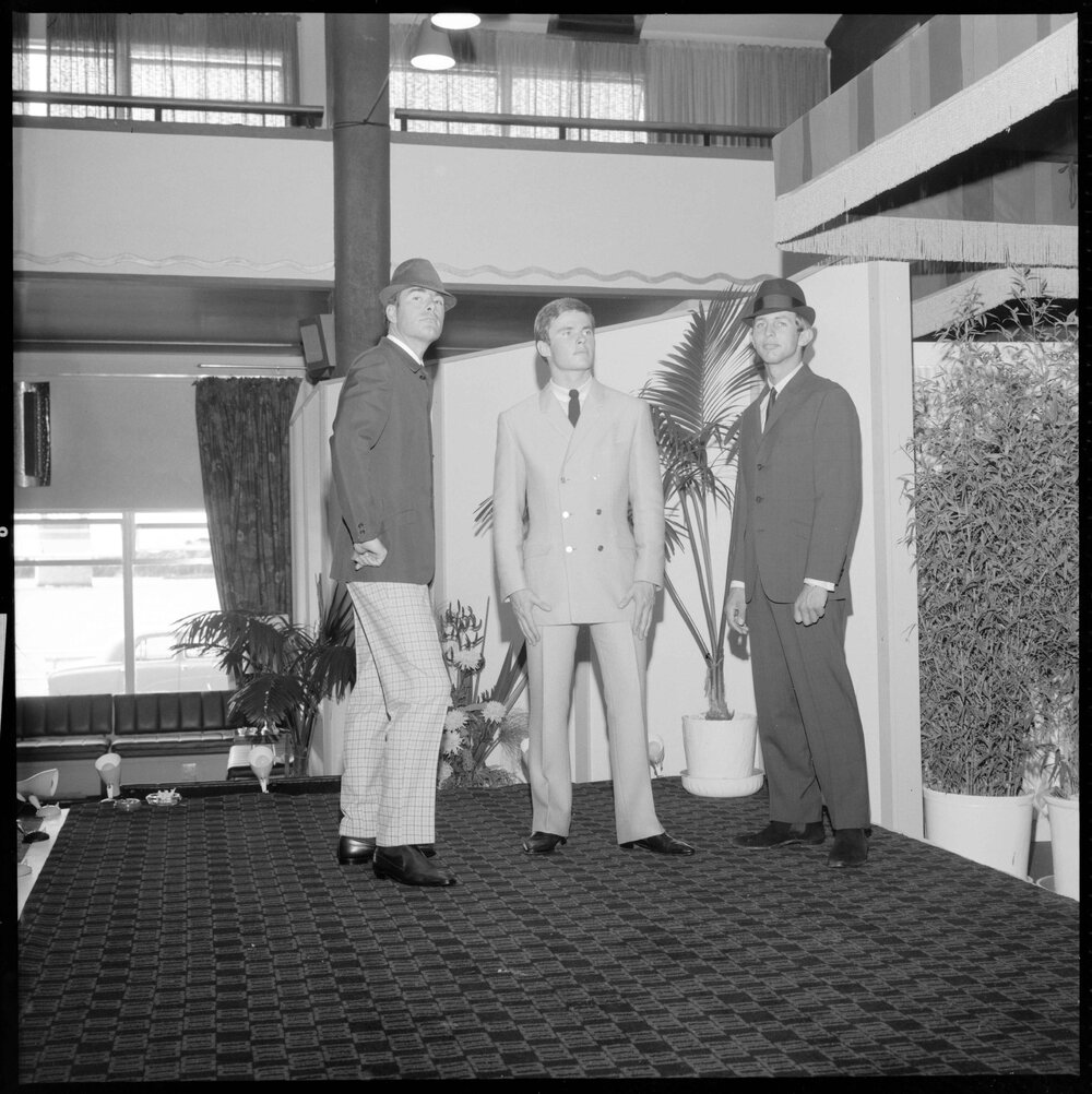 Robert Leek, Richard Hawley and Chris Harding act as models (17 February 1967). Pae Korokī, accessed 14/04/2026, https://paekoroki.tauranga.govt.nz/nodes/view/72674