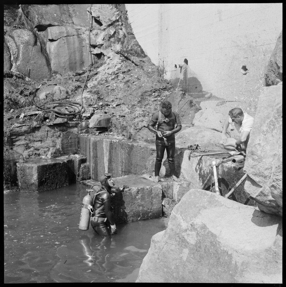 Skin divers Colin Thomas and Henry Laison at work at dam, also Mr H M Binney (23 February 1967). Pae Korokī, accessed 14/03/2026, https://paekoroki.tauranga.govt.nz/nodes/view/72731