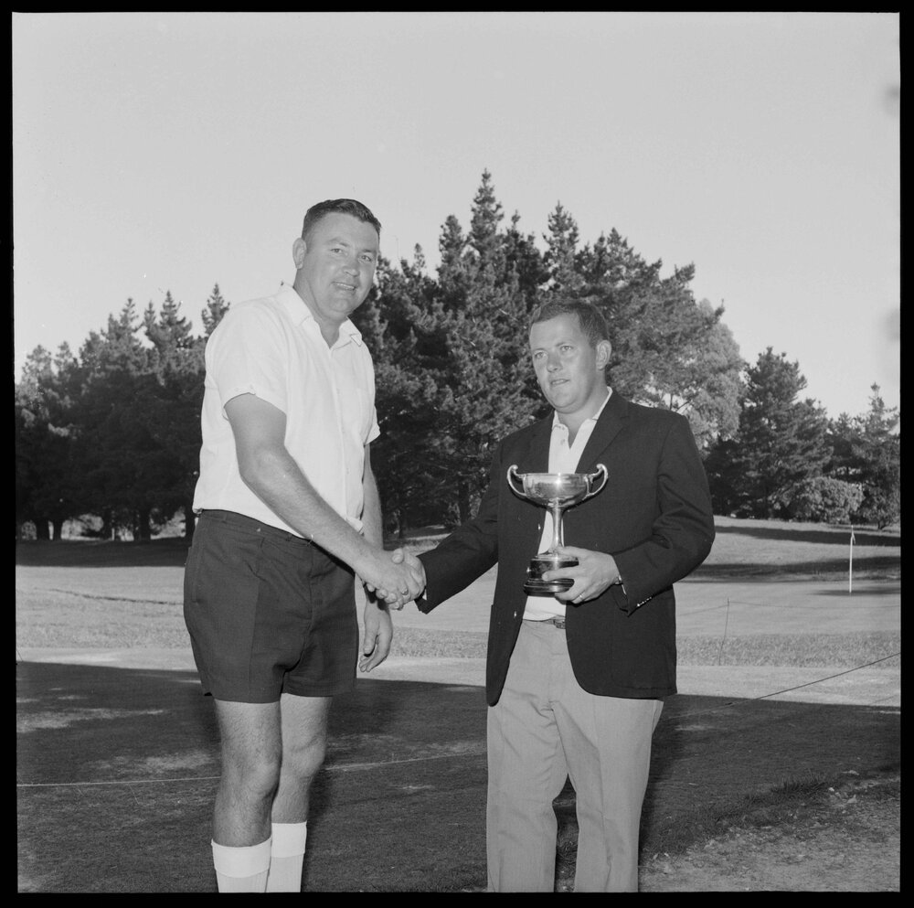 Barry Goodson, Rotorua, and Neville Court, Rotorua, at Mount Maunganui Golf (28 March 1967). Pae Korokī, accessed 11/03/2026, https://paekoroki.tauranga.govt.nz/nodes/view/73189
