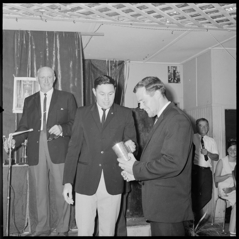 Barry Muir presents Ken Moran with Rearer Mug (5 April 1967). Pae Korokī, accessed 17/04/2026, https://paekoroki.tauranga.govt.nz/nodes/view/73301