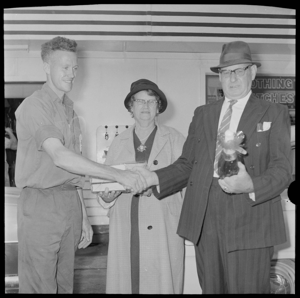 Mr & Mrs A W Langman receive champagne from Laurie Fitzgerald, Summit Service Station (26 April 1967). Pae Korokī, accessed 01/05/2026, https://paekoroki.tauranga.govt.nz/nodes/view/73567