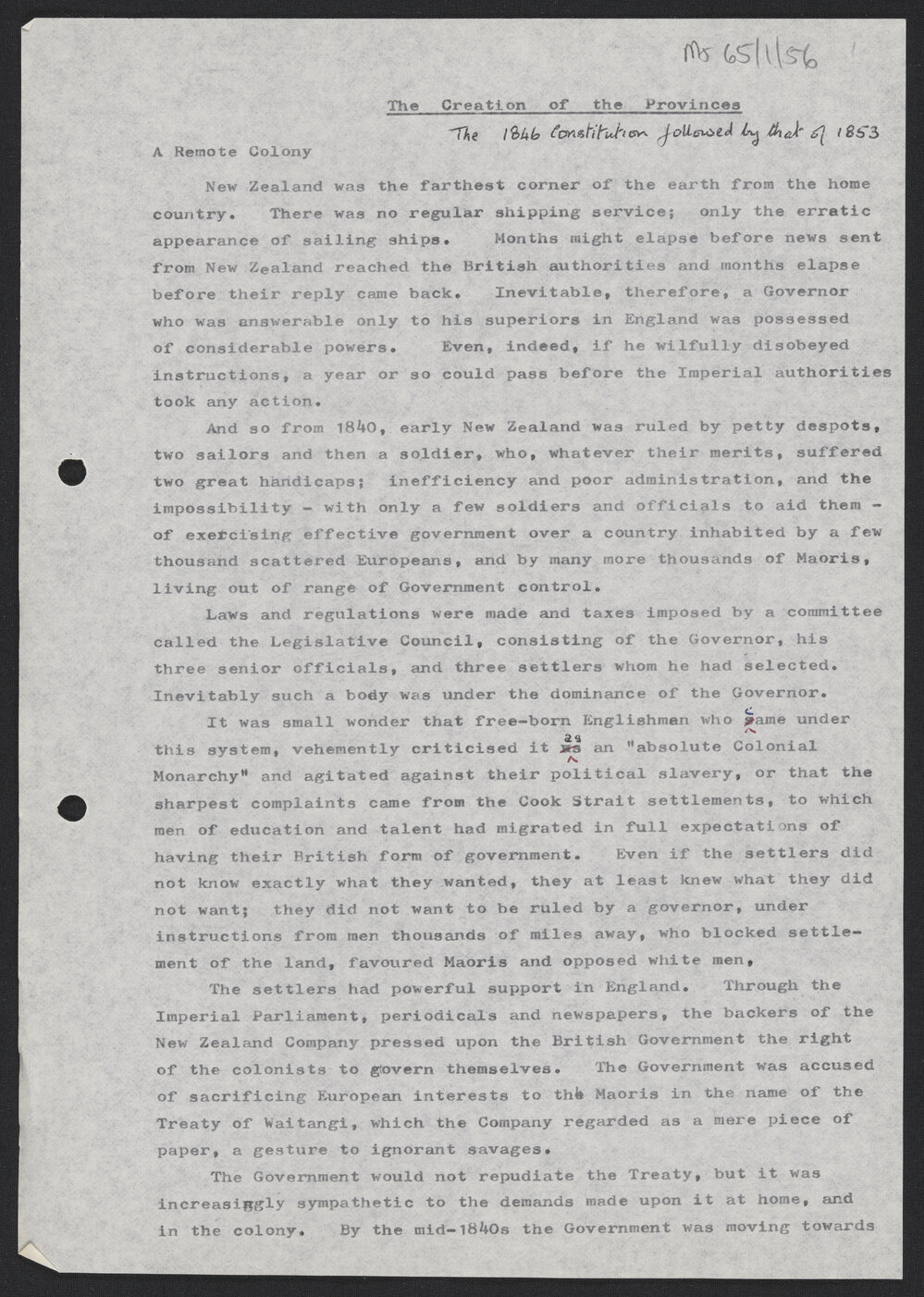 Haslock, Charles Innes Earle, 1900-1982, The Creation of the Provinces: The 1846 Constitution followed by that of 1853. Pae Korokī, accessed 04/04/2026, https://paekoroki.tauranga.govt.nz/nodes/view/74559