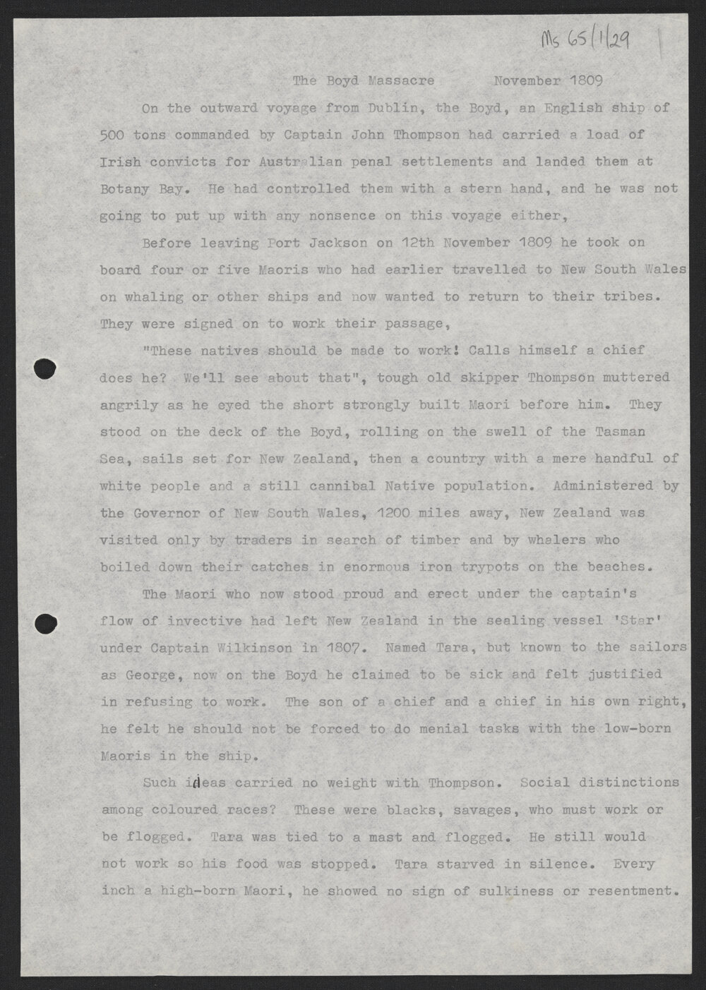 Haslock, Charles Innes Earle, 1900-1982, The Boyd Massacre, November 1809. Pae Korokī, accessed 13/02/2026, https://paekoroki.tauranga.govt.nz/nodes/view/74586