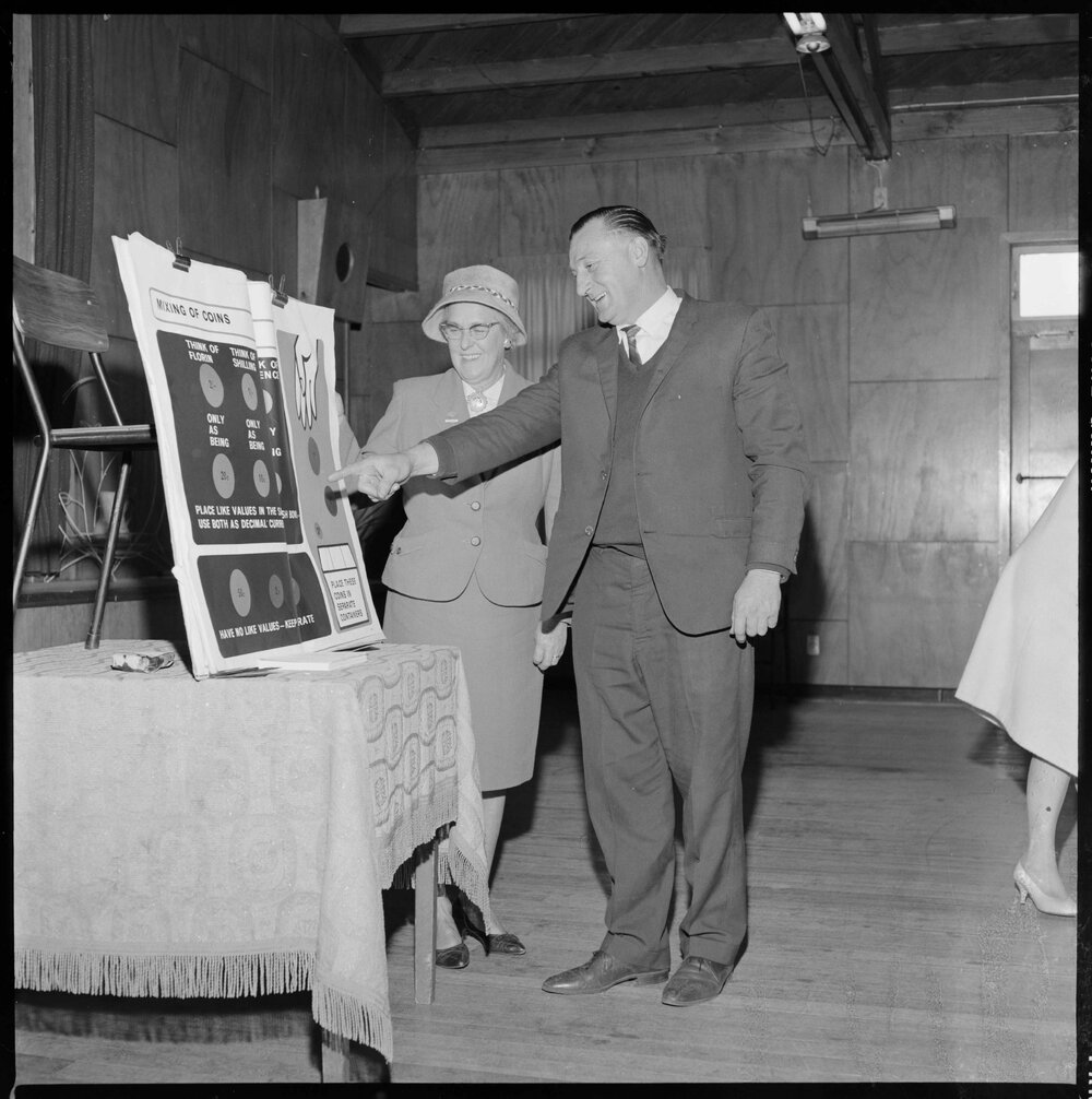 Mrs E Barry with Mr C Mead (decimal currency) at women's section Royal New Zealand Returned and Services Association (16 May 1967). Pae Korokī, accessed 21/04/2026, https://paekoroki.tauranga.govt.nz/nodes/view/76058