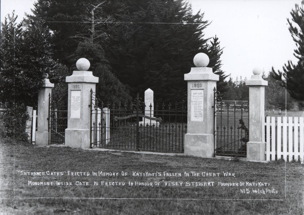 War memorial gates 1920s. Pae Korokī, accessed 06/04/2026, https://paekoroki.tauranga.govt.nz/nodes/view/78543