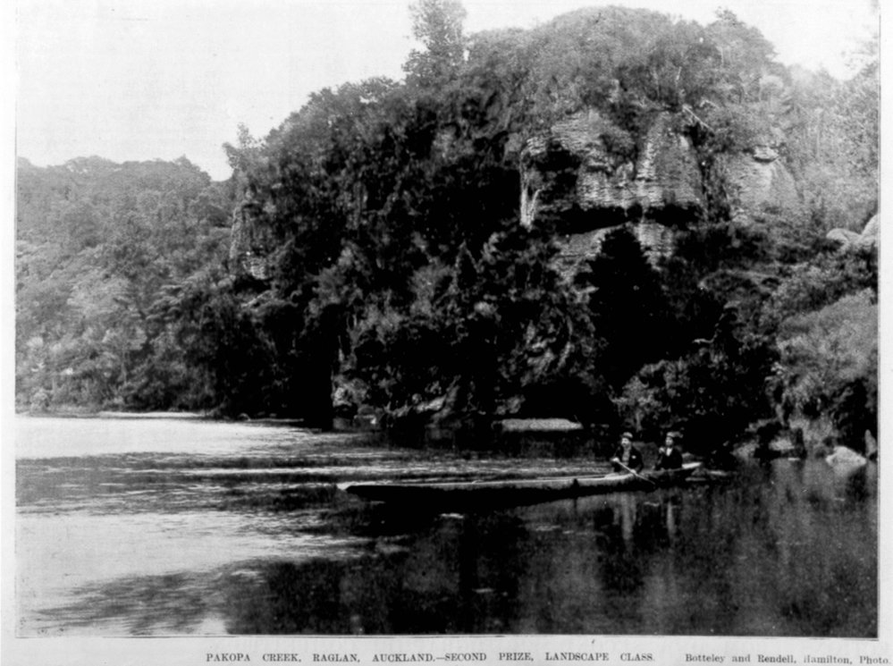 Caption below: Pakopa Creek, Raglan, Auckland – second prize, landscape class.
