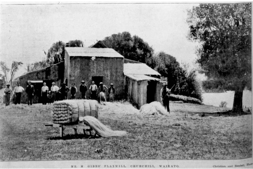 Caption below: Mr M. Gibbs' Flaxmill, Churchill, Waikato.