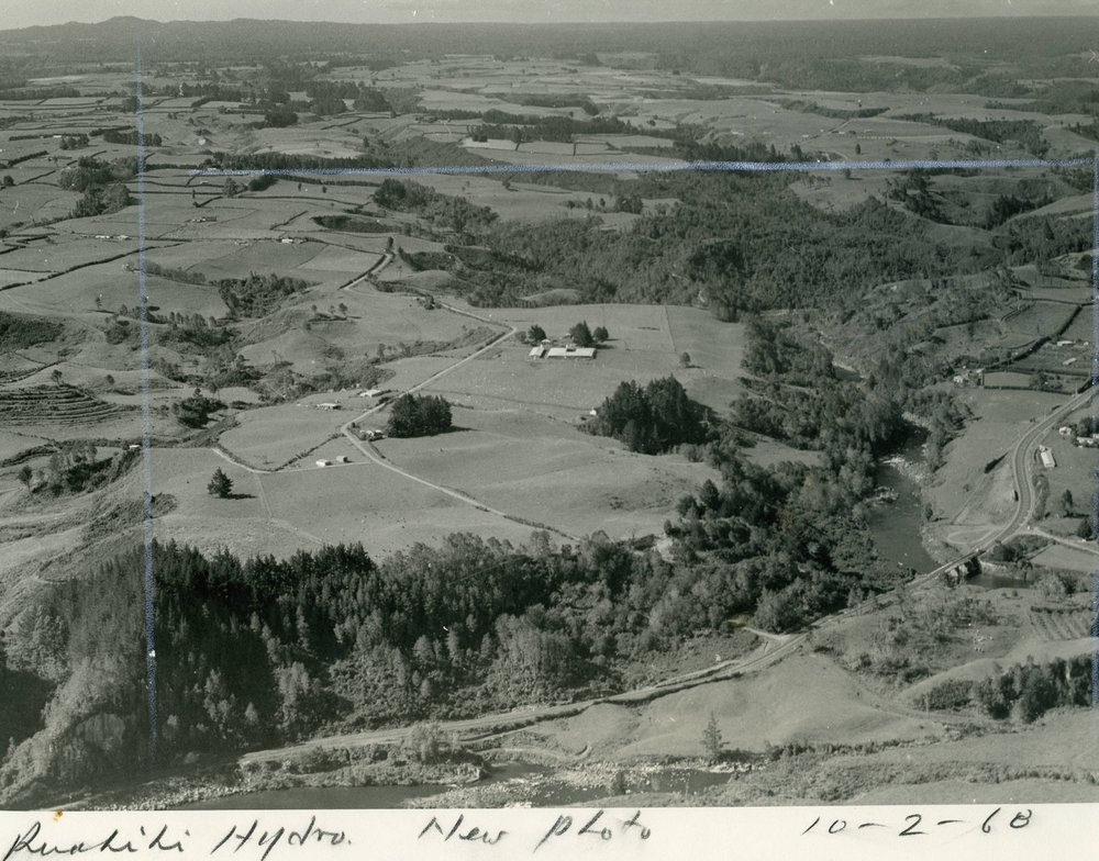 Reference NumberPhoto 09-095DescriptionAerial of Ruahihi Power Station site, Tauranga 1968. Bottom foreground; Wairoa River and State Highway 29. Centre far right; SH 29 heading towards Kaimai Ranges. Acc. No. 2705