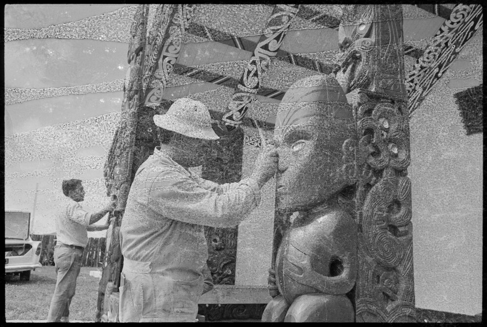 Mr Brown Rewiti restoring a carved figure at the Hairini Pā meeting house (21 March 1966). Pae Korokī, accessed 29/04/2026, https://paekoroki.tauranga.govt.nz/nodes/view/83302