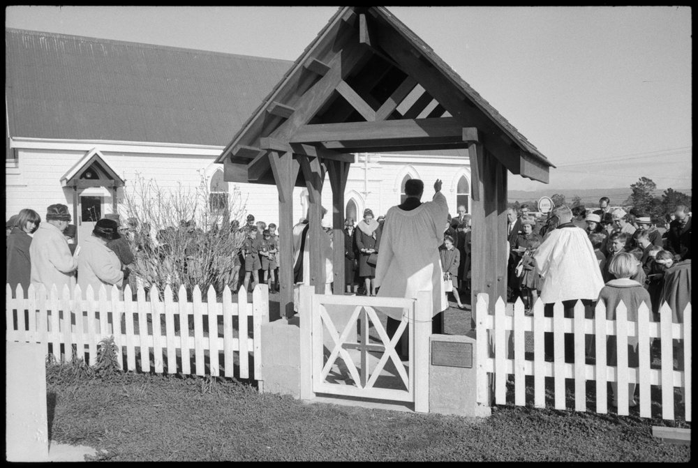 Dedication of new lich-gate at St George's church, Gate Pā (14 June 1965). Pae Korokī, accessed 04/04/2026, https://paekoroki.tauranga.govt.nz/nodes/view/85200