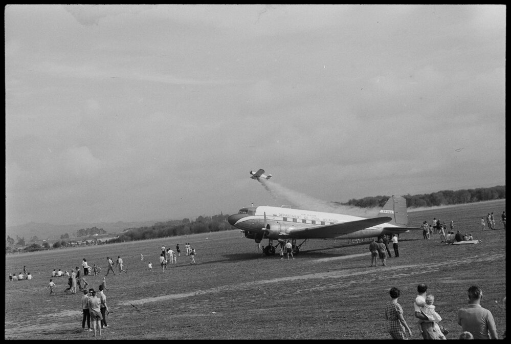 Tauranga Airport opening, flying display , New Zealand Department of Civil Aviation craft (11 April 1968). Pae Korokī, accessed 04/04/2026, https://paekoroki.tauranga.govt.nz/nodes/view/86664