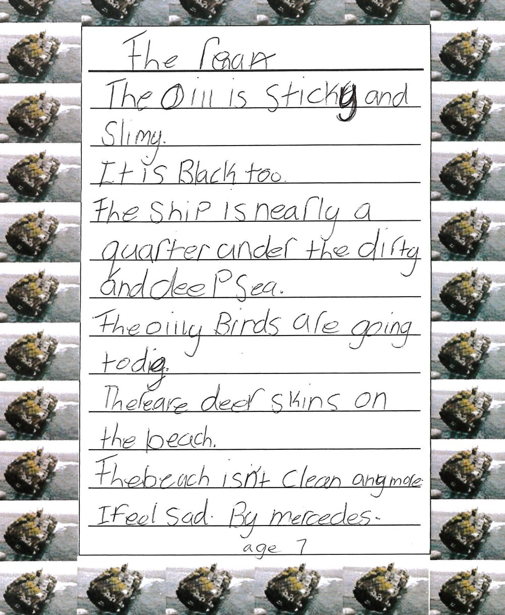 DescriptionIn 2011 Maungatapu School's Room 13 (year's 2 & 3) wrote poetry in reaction to the Rena disaster. The poetry and posters appeared in a window display at Tauranga City Library.