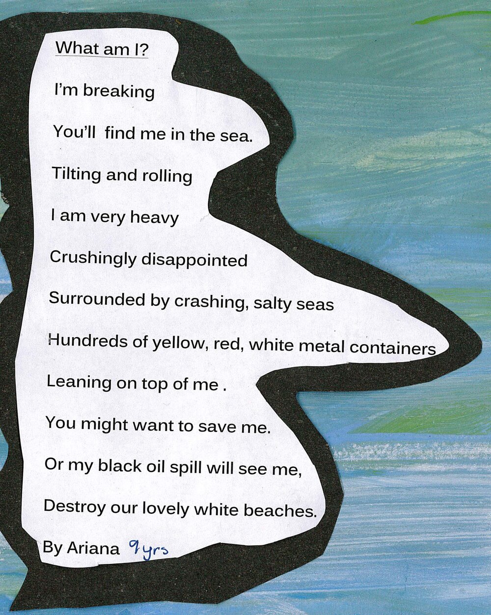 DescriptionIn 2011 Maungatapu School's Room 13 (year's 2 & 3) wrote poetry in reaction to the Rena disaster. The poetry and posters appeared in a window display at Tauranga City Library.