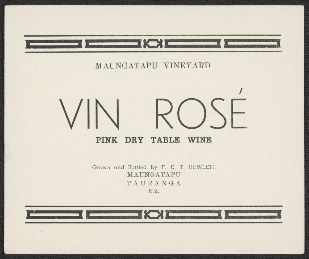 Maungatapu Vineyard, Wine bottle label (c.1939-c.1960). Pae Korokī, accessed 24/03/2026, https://paekoroki.tauranga.govt.nz/nodes/view/88352