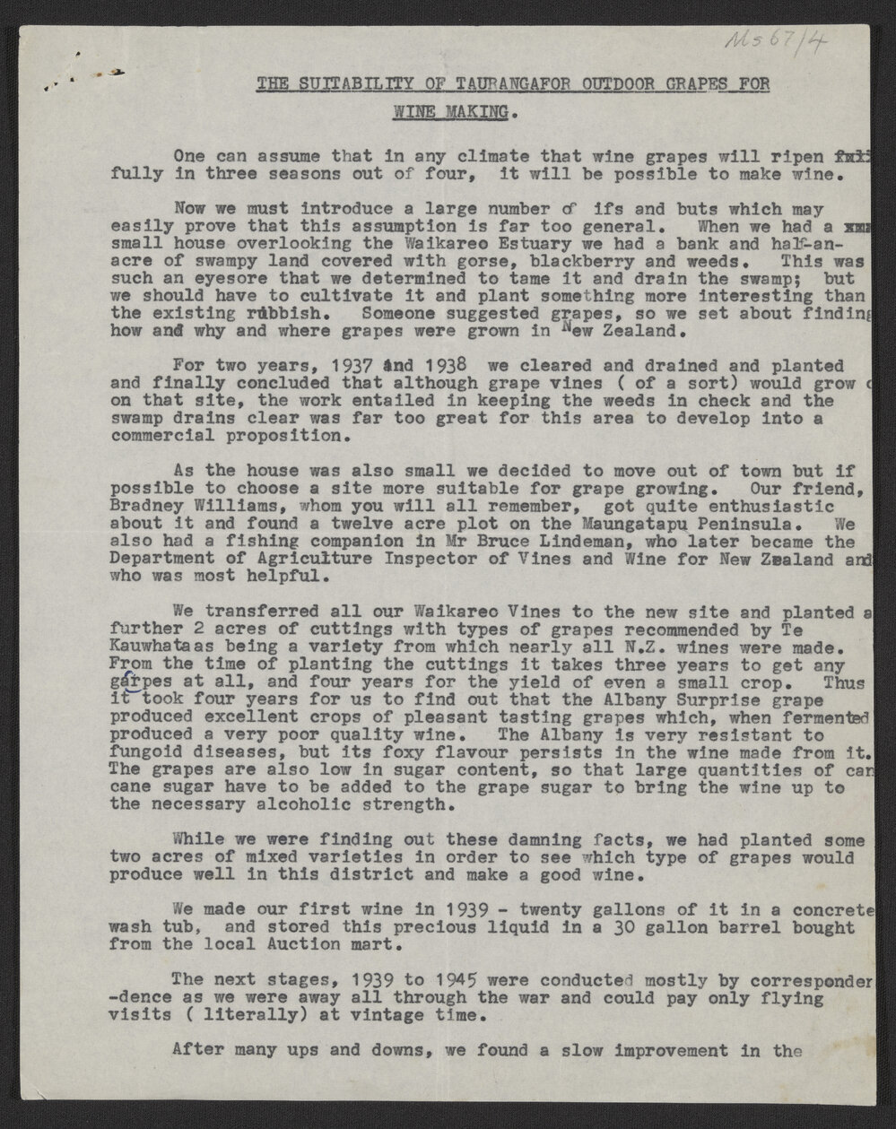 Hewlett, Francis Esme Theodore (1891-1974), Essay titled "The suitability of Tauranga for outdoor grapes for wine making" (c.1939-c.1960). Pae Korokī, accessed 24/03/2026, https://paekoroki.tauranga.govt.nz/nodes/view/88360