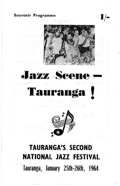 An animated gif (download original animated gif to see) flicking through a scanned copy of the 1964 First National Open Air Jazz Festival Souvenir Programme. the Festival has been a regular festival in Tauranga since 1963. _x000D_