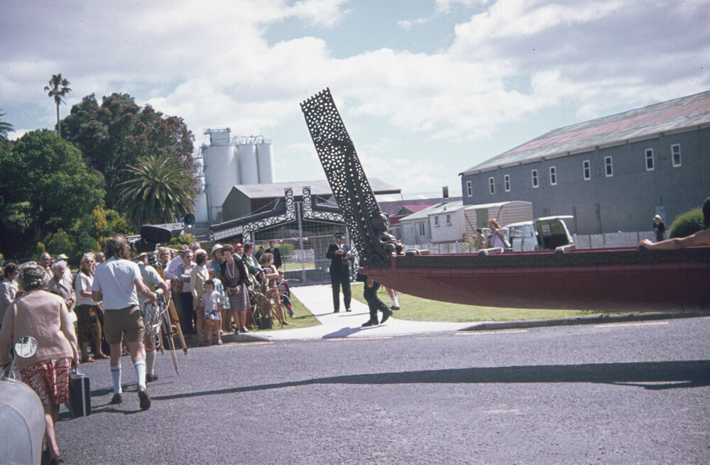 Fletcher, Kathleen, Canoe shelter (6 December 1975). Pae Korokī, accessed 18/03/2026, https://paekoroki.tauranga.govt.nz/nodes/view/91019