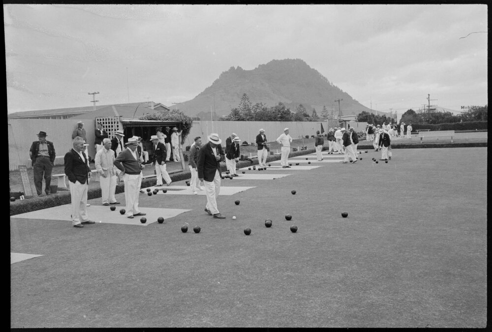 Date11 November 1965Reference Numberphoto gcc-11385DescriptionMount Maunganui Lawn Bowling tournament. Published 11 November 1965.Physical Description35mm black-and-white negative (1/3)Photographer/CreatorBay of Plenty Times