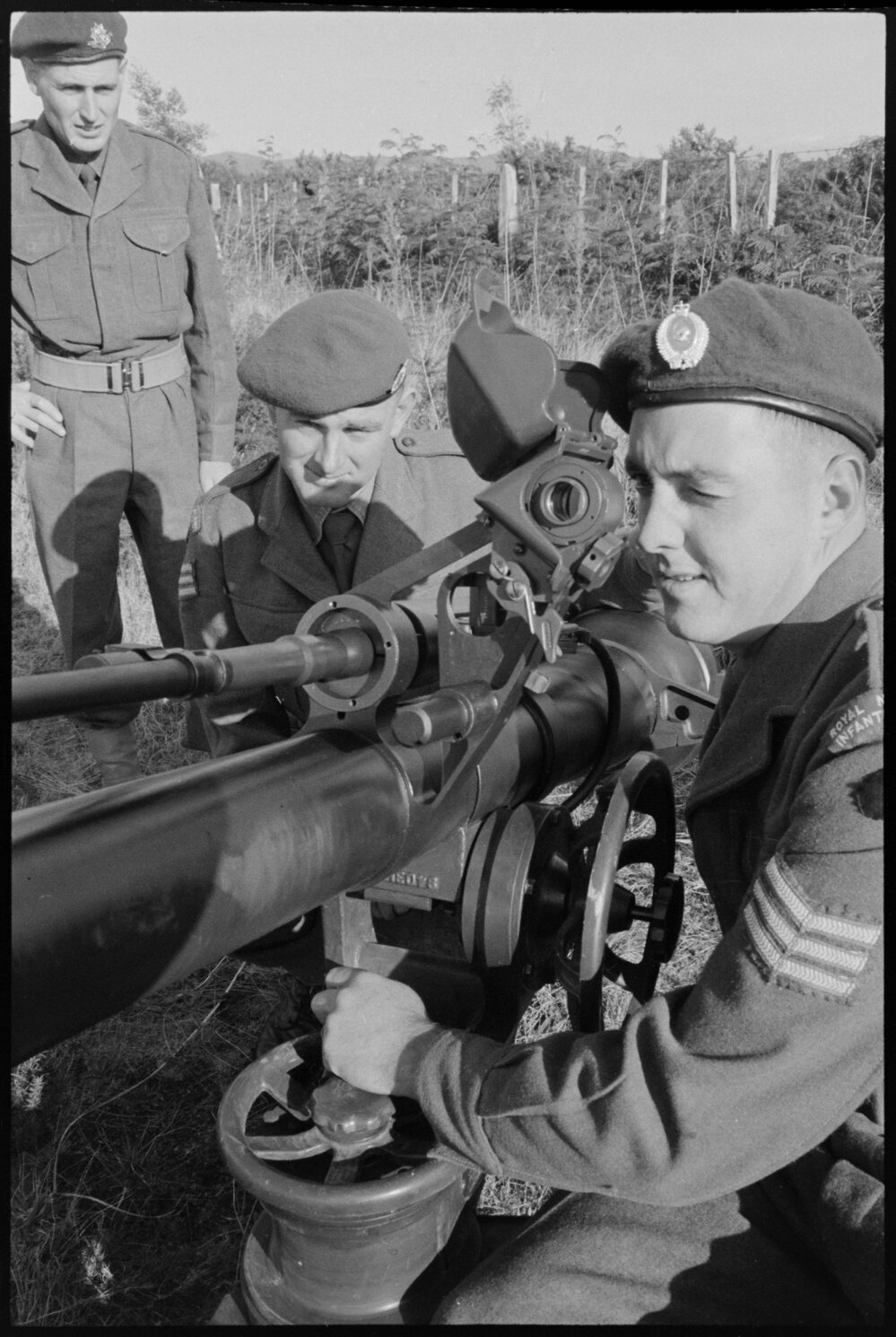 Date30 May 1966Reference NumberPhoto gcc-14407DescriptionHauraki Regiment exercise. Sergeant: R.A. Craft (left), M. Kippenberger (centre), G.H. Morse. Published 30 May 1966.Physical Description35mm black-and-white negative (3/3)Photographer/CreatorBay of Plenty Times