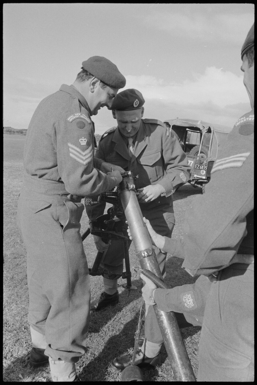 Date30 May 1966Reference NumberPhoto gcc-14408DescriptionHauraki Regiment exercise. D.J. Jones, R.W. Burton. Published 30 May 1966.Physical Description35mm black-and-white negative (1/3)Photographer/CreatorBay of Plenty Times