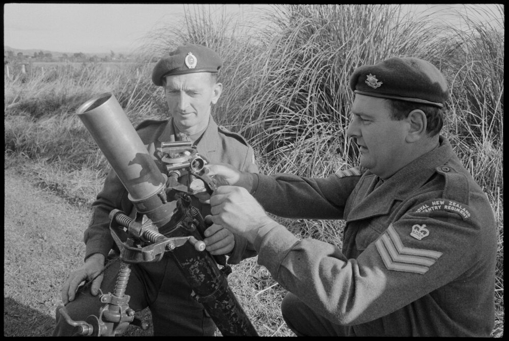 Date30 May 1966Reference NumberPhoto gcc-14410DescriptionHauraki Regiment exercise. D.J. Jones, R.W. Burton. Published 30 May 1966.Physical Description35mm black-and-white negative (3/3)Photographer/CreatorBay of Plenty Times