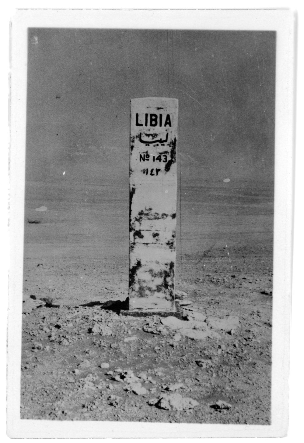 Date1943Reference NumberPhoto 15-101DescriptionThe border stone between Libya and Egypt during the Second World War. Originally belonging to James William Pratt (1921-1998) of the R.A.F it was lent to Tauranga City Libraries for digitisation in 2015 by his brother Peter Pratt. Acknowledgement Peter Pratt and Tauranga City Libraries.FormatPrintPhysical Descriptionblack and white printSource of AcquisitionPeter Pratt