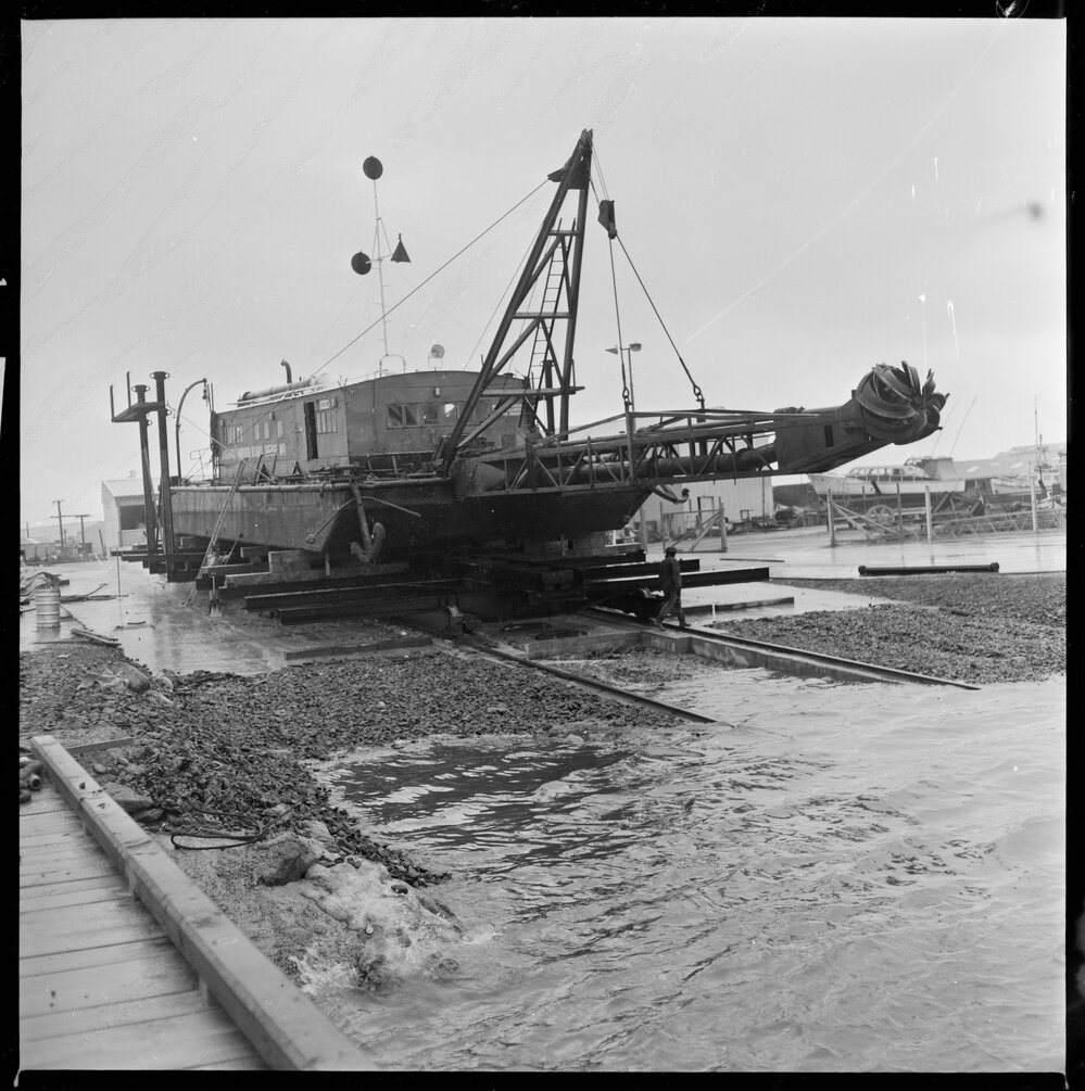 Bay of Plenty Harbour Board dredge Kere-iti on the new Sulphur Point slipway (19 November 1971). Pae Korokī, accessed 18/03/2026, https://paekoroki.tauranga.govt.nz/nodes/view/93891