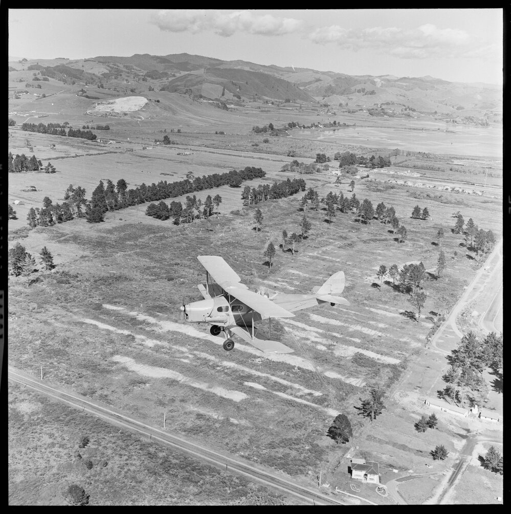 The De Havilland Fox flying over Pāpāmoa (11 April 1972). Pae Korokī, accessed 16/04/2026, https://paekoroki.tauranga.govt.nz/nodes/view/94157